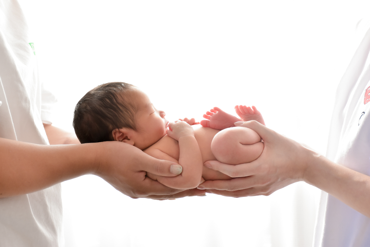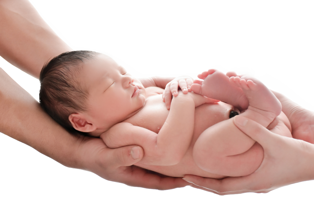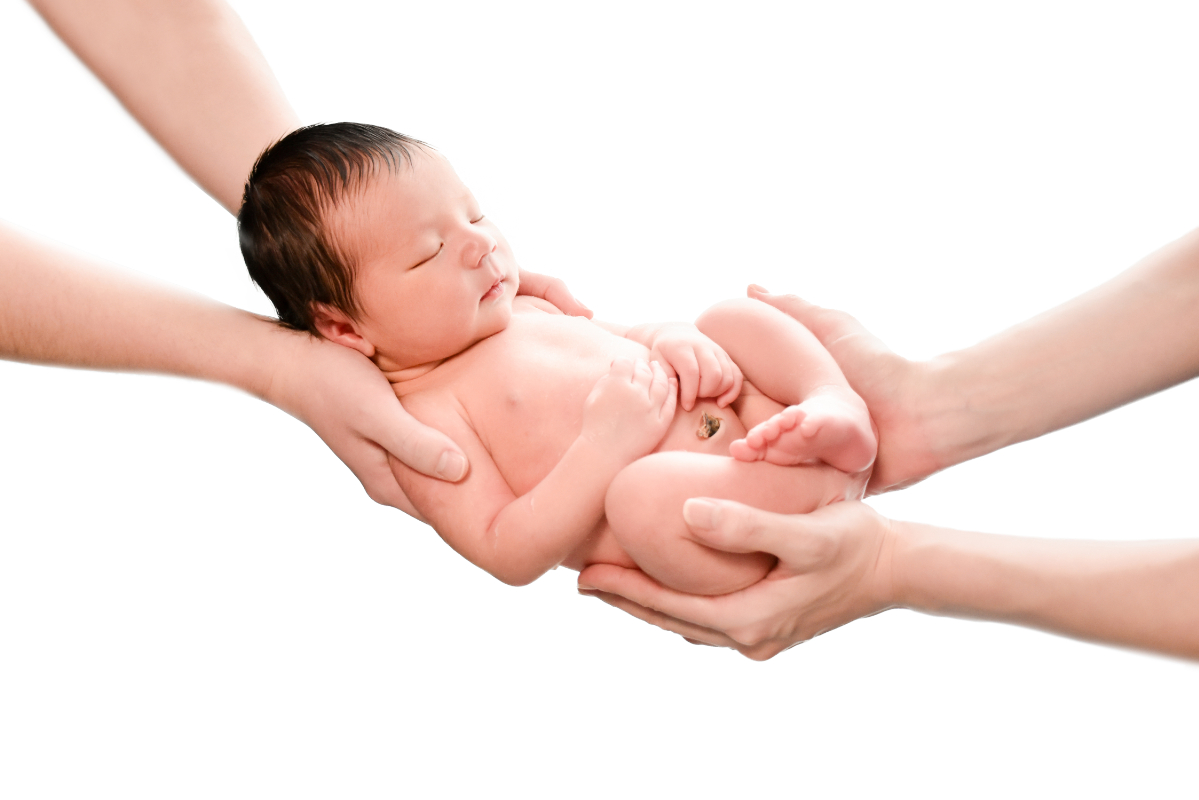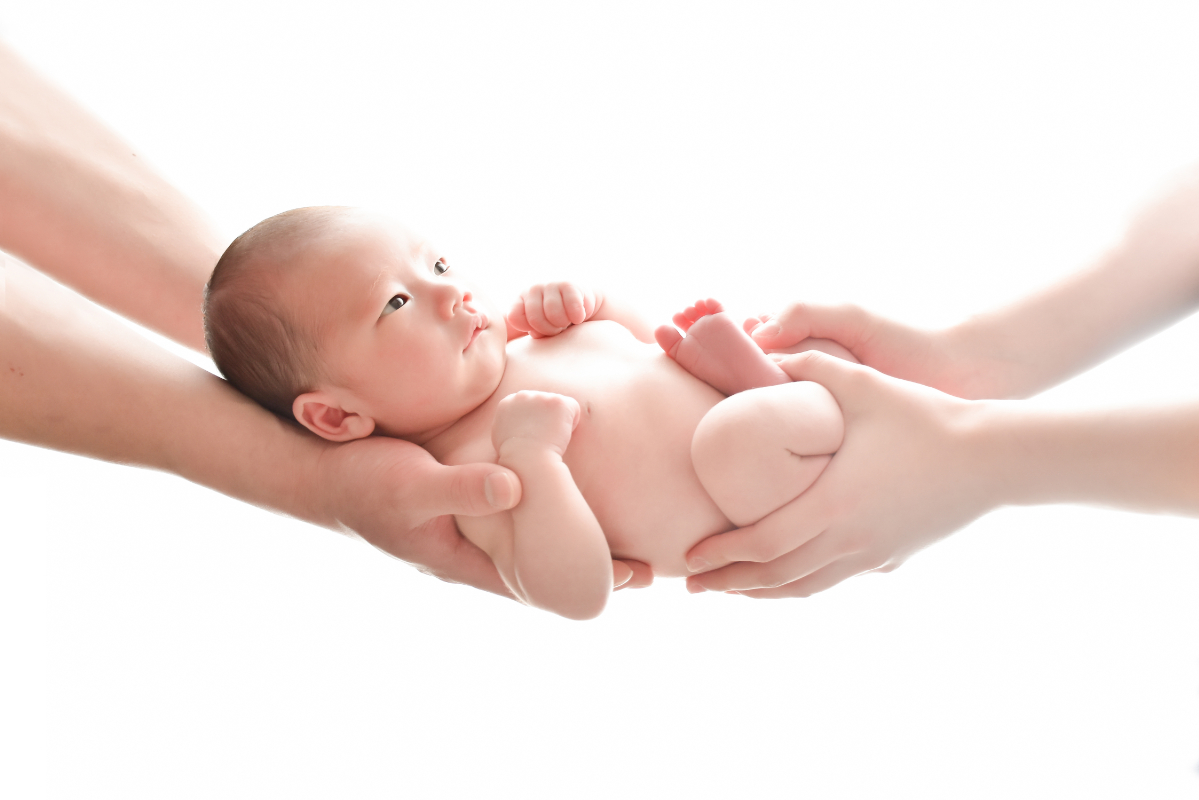 パパとママの両手で揺りかごのように